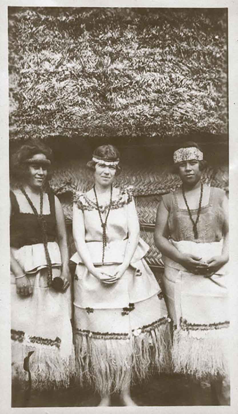 มาร์กาเรต มี้ด ในชุดพื้นเมือง กับสาวชาวซามัวสองคน